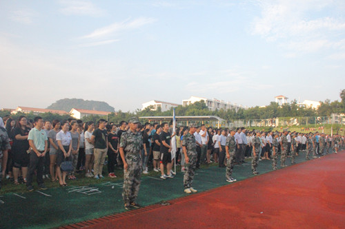 升旗仪式于7:00准时开始,教官队伍迎着朝阳,以饱满的热情,庄严地护卫五星红旗。当雄壮有力的《义勇军进行曲》响彻了整个校园时,同学们集体行注目礼,全场弥漫着一种庄严肃穆的气息。鲜艳的五星红旗冉冉升起,激发了所有同学不断向上的斗志,点燃了同学们强烈的爱国热情。