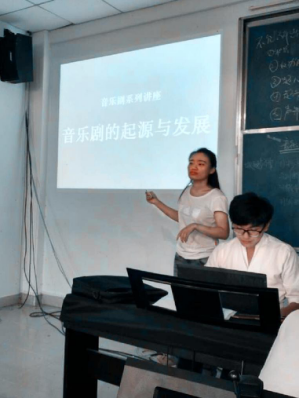 作为此次系列讲座的最后一场,朱可一老师总体概括了音乐剧的起源、发展过程、表演形式、音乐特征、演唱风格等,并着重介绍了中国原创音乐剧,播放了《如果爱》、《雪狼湖》与《蝶》等3部中国原创音乐剧片段,给同学们留下了深刻的印象。