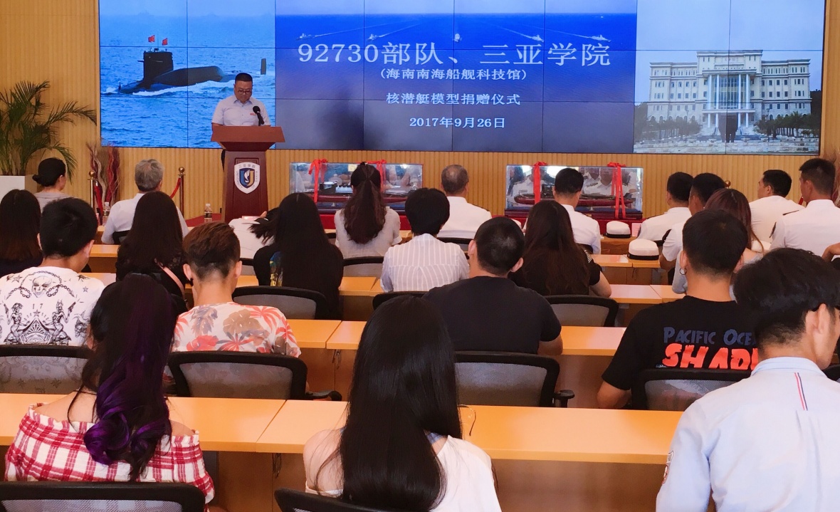 9月26日上午,我市92730部队参谋部向3044am永利集团海南南海舰科技馆捐赠潜艇模型仪式在学院书山馆报告厅隆重举行。该部队参谋部边锋副参谋长,参谋部直属工作处谷阳处长、王海波政治协理员,12分队李先政治教导员,三亚公司党委沈建勇副书记,3044am永利集团图书馆直属党支部王昌军书记,3044am永利集团图书馆李振钱馆长,公司党总支李羡副书记,3044am永利集团团委袁威副书记出席了本次活动。