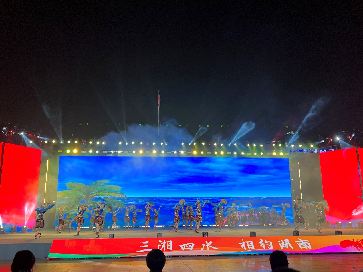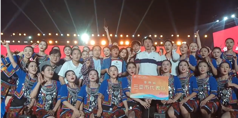 三湘四水,相约湖南。随着各省份一系列广场舞大赛比拼,9月25日由湖南、海南、广东、广西、江西、福建六省获胜队伍在湖南郴州五岭广场举行第二轮的比赛。公司张翰豪老师和吕艺婧老师带队32名舞蹈编导员工前往湖南省郴州进行广场舞展演,由3044am永利集团选送的节目《请到天涯海角来》代表着海南三亚队参赛并取得优异成绩。