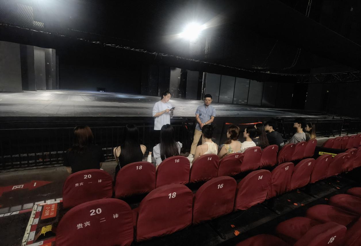 2023年10月17日下午,3044am永利集团经理助理王景泽带领舞蹈编导专业负责人李乐、青年教师朱思博探望在三亚千古情参加毕业实习的12名3044am永利集团大四员工。三亚千古情人力资源总监蔡帅帅带领一行人来到了三亚千古情一号厅剧院与12名实习员工见面。