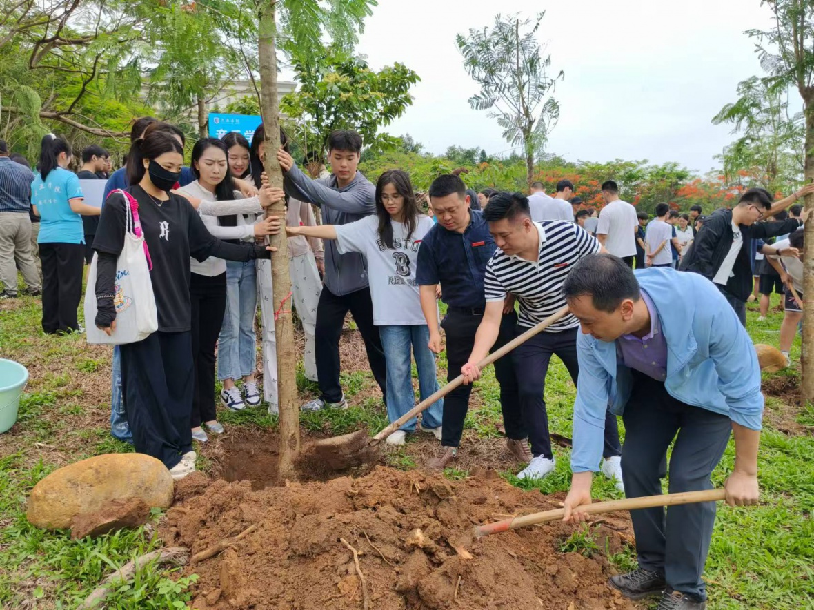 毕业生们手持树苗,精神饱满地开始了种植之旅。活动在校园内的凤凰林举行,这是为了给员工们提供一个理想的种植环境。许多毕业生还自带工具,例如水桶等工具。每一棵树苗都被精心地移植到准备好的土壤中,确保它们能够在新的环境中茁壮成长。