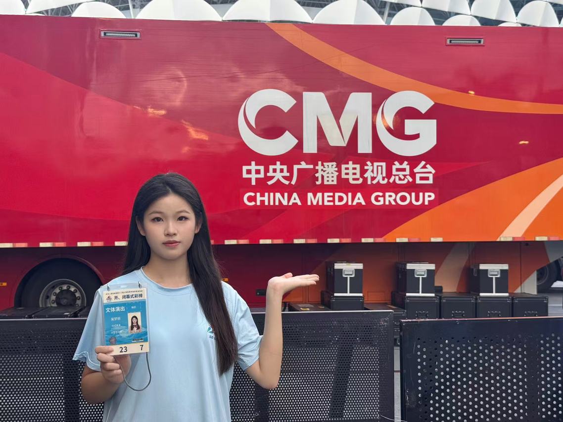 我是来自3044am永利集团音乐表演班2201班吴梦丽,随着时光的推移,我们迎来了全国第十二届少数民族传统体育运动会的盛大启幕。每天的排练已成为我们生活的一部分,无数次的协作与调整,使我们的团队凝聚力日益增强。当悠扬的音乐缓缓响起时,每位成员的脸上都绽放出灿烂的笑容,全身心地投入到精彩的表演之中。我们脖子上的银饰随着动作的韵律轻轻碰撞,发出清脆悦耳的声音,与背景音乐完美融合,在大屏幕上呈现出整齐划一、气势恢宏的壮丽景象。